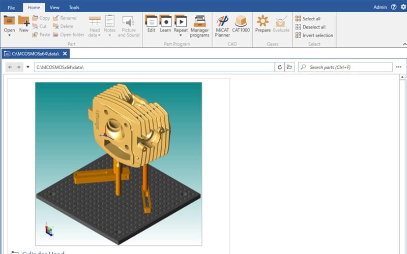 El programa de medición se carga en el Part Manager de MCOSMOS para su ejecución inmediata.